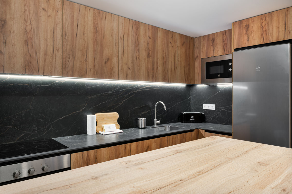 Está equipado con TV. Cocina completa ( frigorífico, lavavajillas, lavadora, cocina con horno y placa vitrocerámica, microondas, tostadora y plancha) baño privado con secador de pelo.