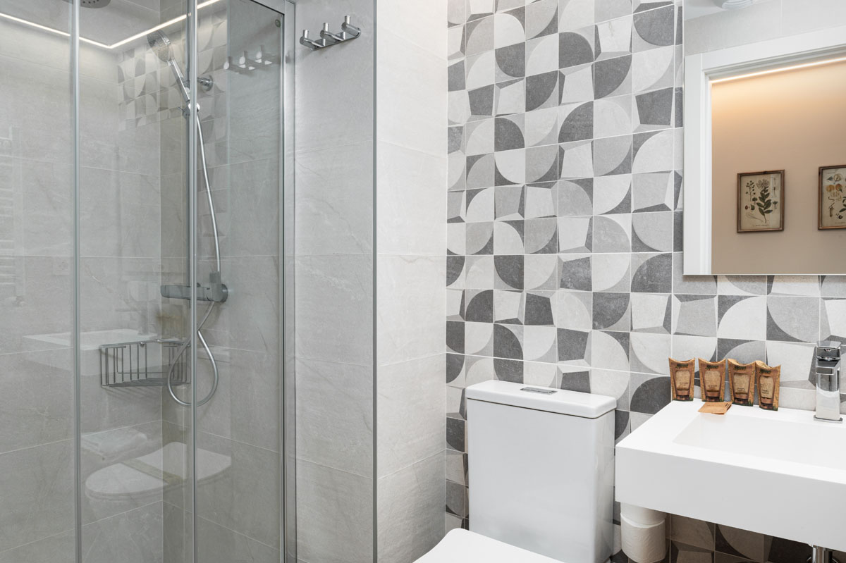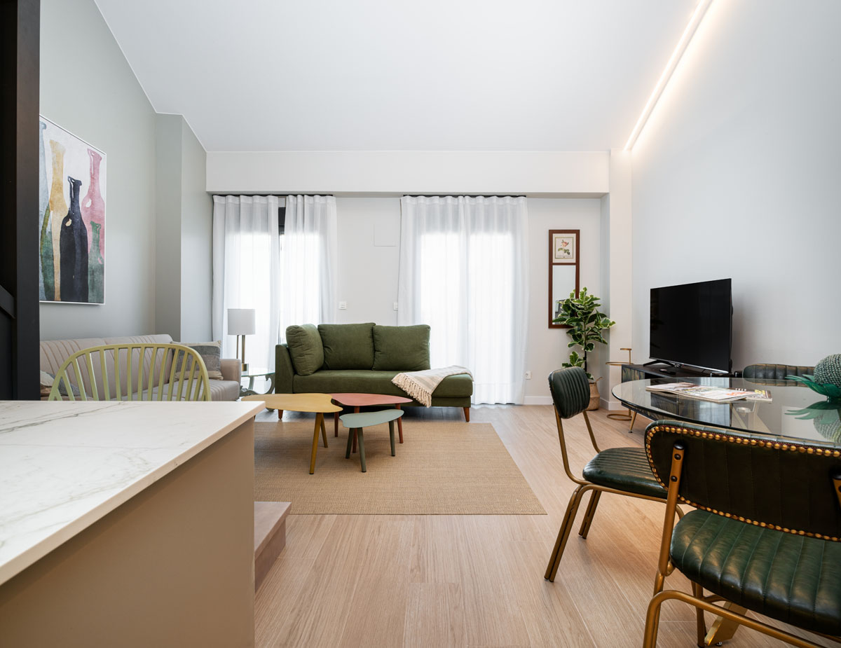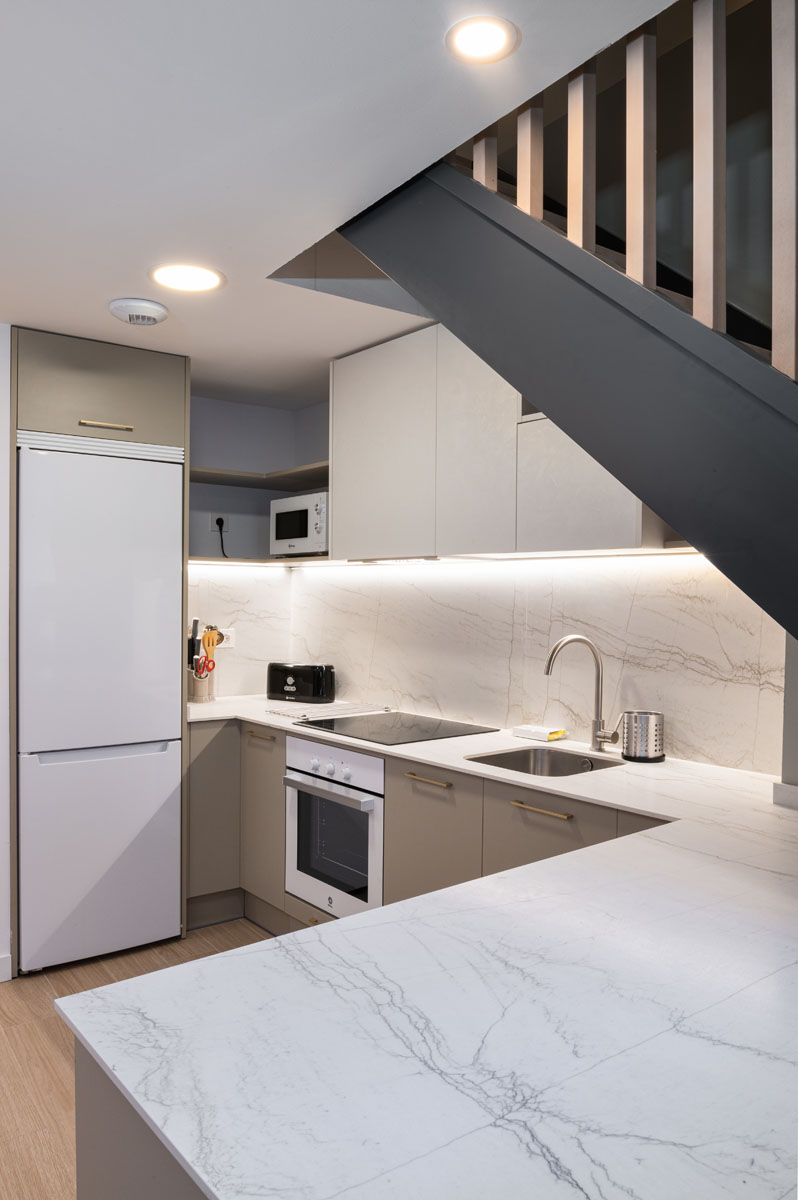 Está equipado con TV. Cocina completa (frigorífico , lavavajillas, lavadora, cocina con horno y placa vitrocerámica, microondas, tostadora y plancha) baño privado con secador de pelo.