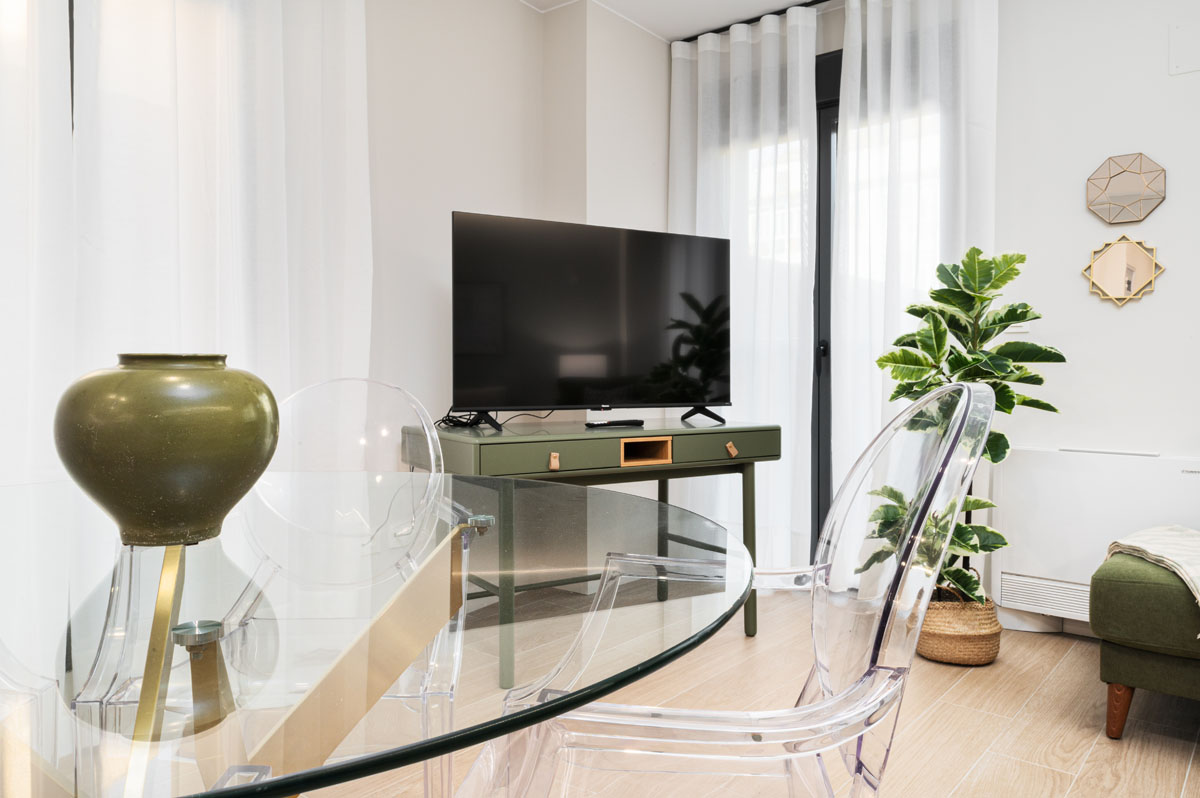 Superficie: 60 m2. Está equipado con TV. Cocina completa ( frigorífico , lavavajillas, lavadora, cocina con horno y placa vitrocerámica, microondas, tostadora y plancha) baño privado con secador de pelo.